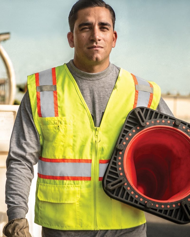 This vest has your back in comfortable Ultra-Cool mesh with reflective safety tape.