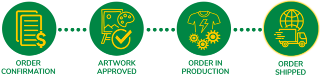 Once your artwork is confirmed and the production / shipping date of your order has been confirmed you will receive an email with a scheduled production date. Your order is now considered “In Production” although in most cases it will not be physically produced until the scheduled production date.